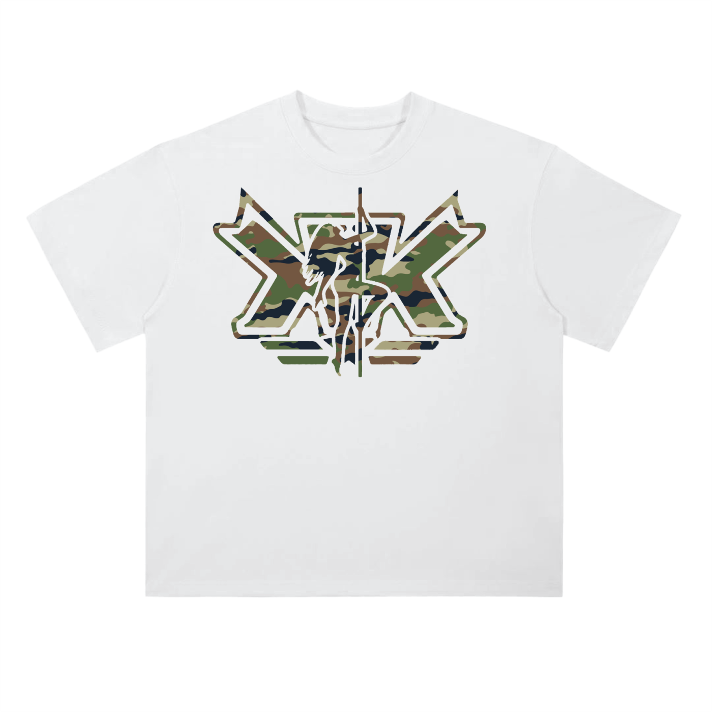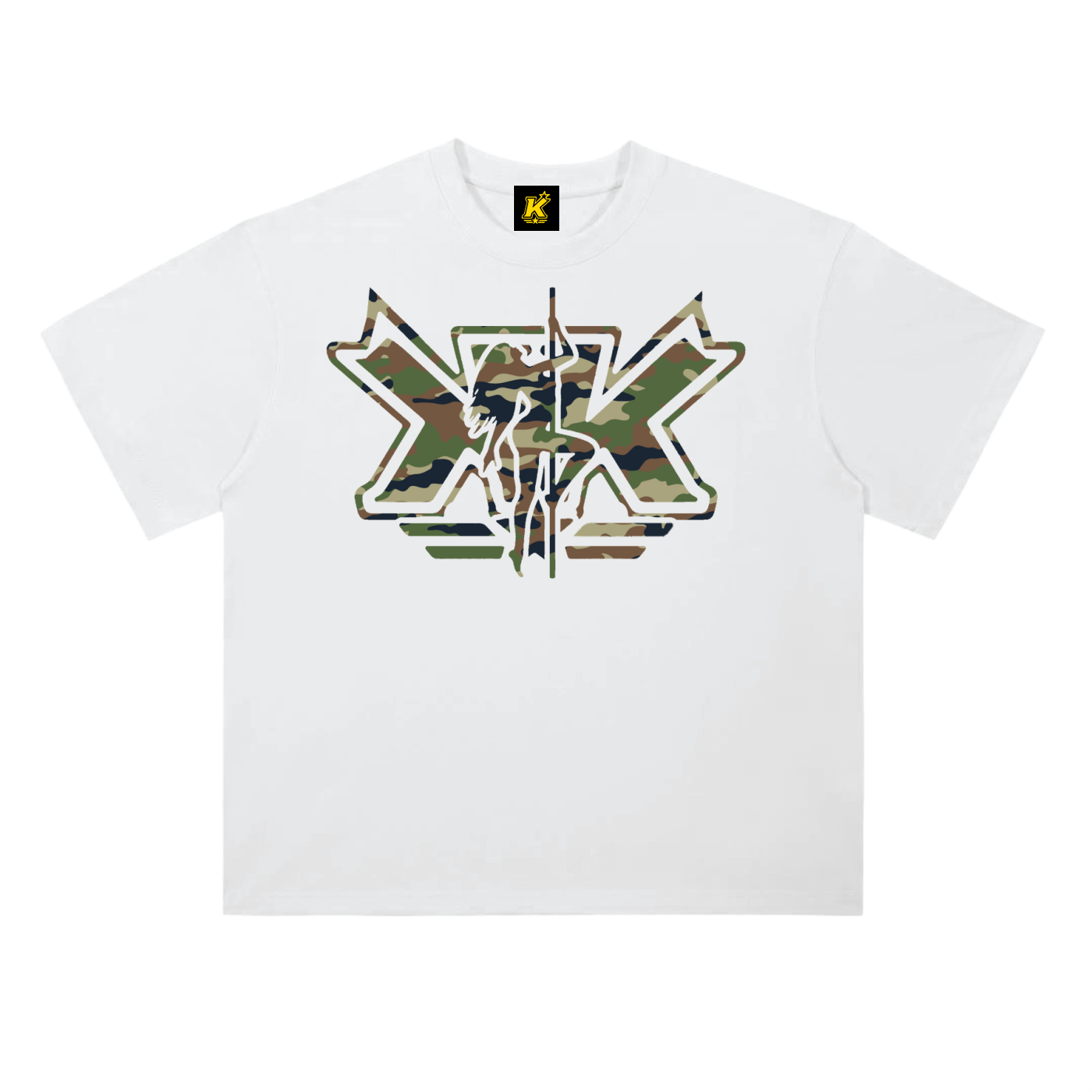 The KARISMA “CAMO K” tee represents raw energy, attitude, and individuality. Featuring the signature KARISMA logo in a camouflage pattern, it fuses military toughness with streetwear rebellion. At the center, the silhouette of a powerful figure brings a mix of confidence and sensual edge — a statement of charisma and control.
